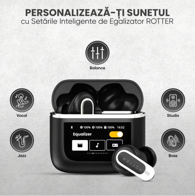 Descoperă căștile ROTTER cu Egalizator Inteligent și funcții avansate pentru o calitate audio superioară și un design elegant.